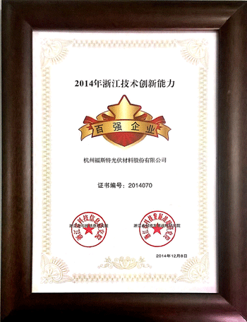 福斯特榮獲2014年浙江技術(shù)創(chuàng)新能力百強(qiáng)企業(yè)