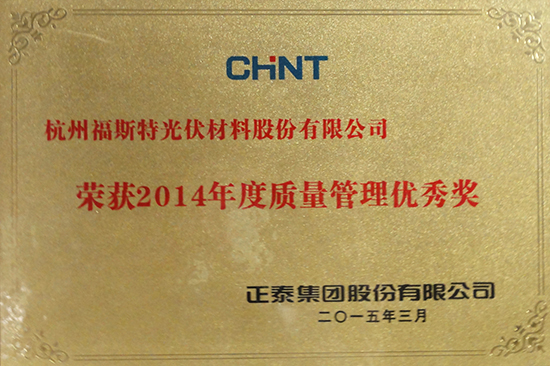 福斯特榮獲正泰集團(tuán)2014年度質(zhì)量管理優(yōu)秀獎